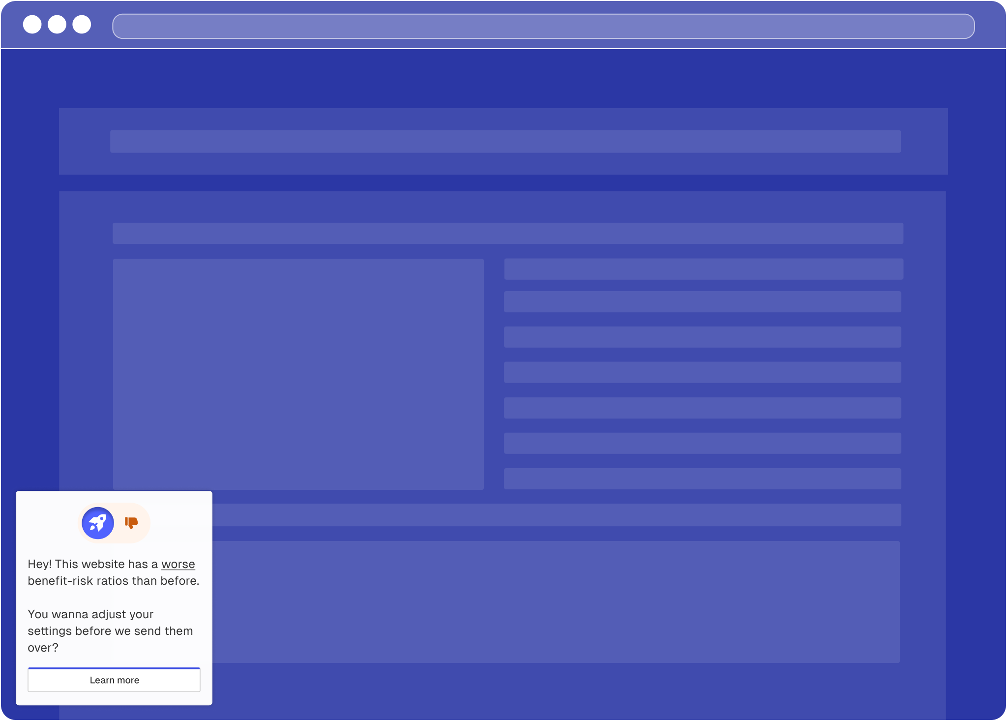 Our automated risk assessment is unique on the market and very important for you and your users. The reason for this is that Consenter operates on the principle that users should not be shown information again if they have already made a decision for or against giving their consent based on this information. This principle is very important for the positive user experience of your users. In today's practice, many other website operators and consent management platforms (CMPs) create a poor user experience by repeatedly asking users for their consent and withholding relevant information about risks or fatiguing users with irrelevant information.